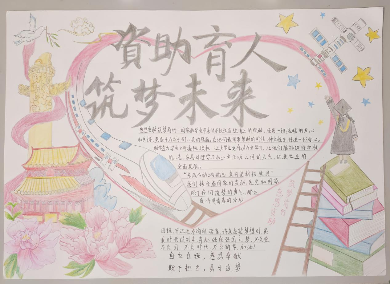 为了进一步推进员工资助政策宣传工作,让广大学子更深入地了解和关注资助政策,感恩党和国家的关怀,太阳成集团tyc122ccvip举办2024年“青春奋斗新时代·矢志前行谱新篇”资助手抄报大赛。此次活动获得了同学们的热情响应,同学们全心创作,涌现出了一批积极向上、创意十足的优秀作品。