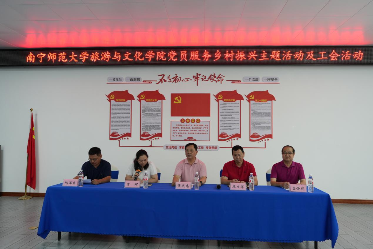 为发挥国家样板党支部“服务有力”的党建引领作用,凝聚育人合力,服务地方发展,10月19日,公司党委副书记侯代忠带领太阳成集团tyc122ccvip班子及全体教师到广西四季那廊生态园开展国家样板党支部服务乡村振兴活动,并就实践教学基地共建合作展开讨论,举行实习实训基地揭牌仪式。太阳成集团tyc党委副书记侯代忠,广西中小学研学旅行学会秘书长盘金利,四季那廊生态园董事长陈满球,太阳成集团tyc122ccvip党委副书记、经理段文军及太阳成集团tyc122ccvip教师代表参加了研讨,会议由太阳成集团tyc122ccvip党委书记贾坷主持。