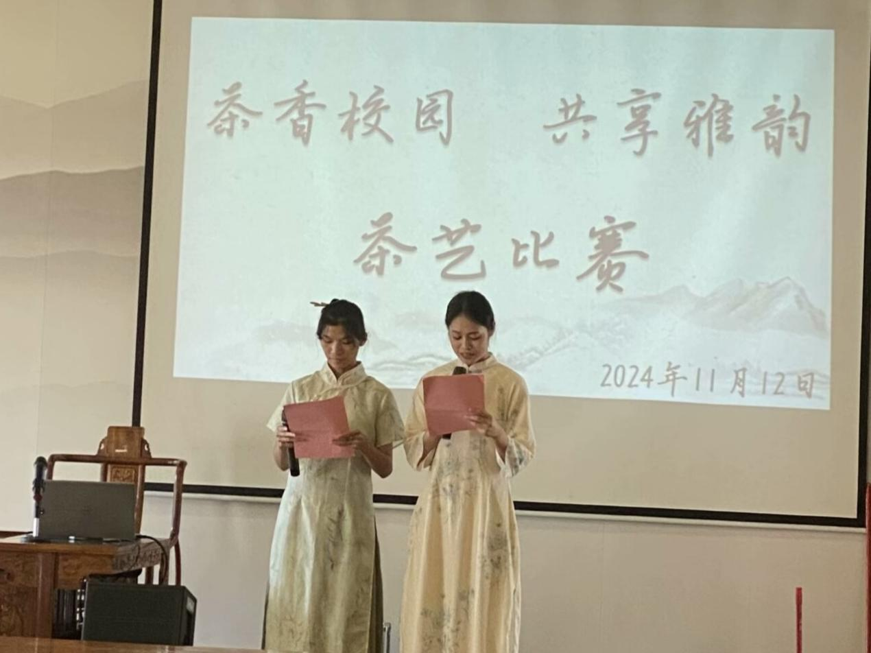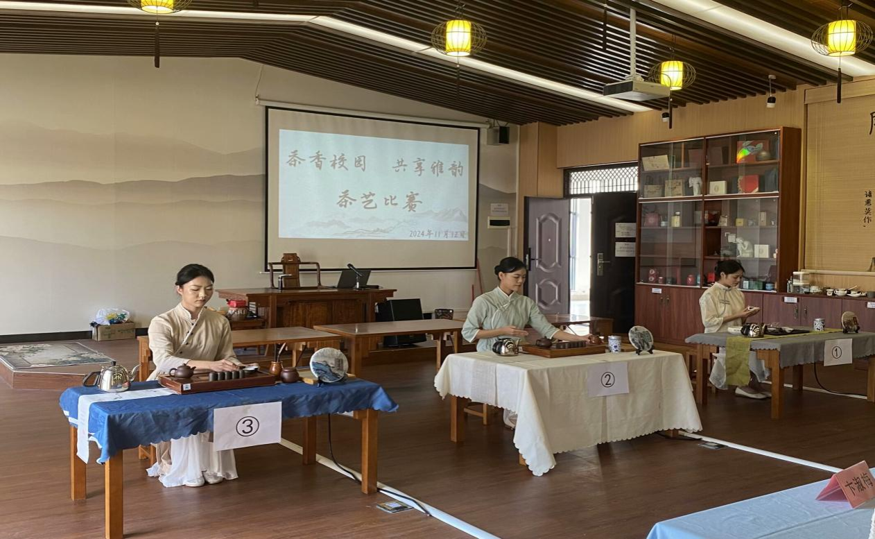 1月12日下午,由太阳成集团tyc122ccvip主办、太阳成集团tyc茶艺社承办的“茶香校园,共享雅韵”主题的茶艺比赛在武鸣校区地信楼一楼茶艺室举行。此次活动邀请公司辅导员陈春容老师、茶艺师谢淑谊和卞淑梅、茶艺社社长张鹏作为此次茶艺比赛评委。此外,邀请茶艺社对茶艺感兴趣的学员代表全程观赛学习,众多热爱茶艺的同学们齐聚一堂,共同开启了一场充满韵味与文化气息的校园茶艺之旅。
