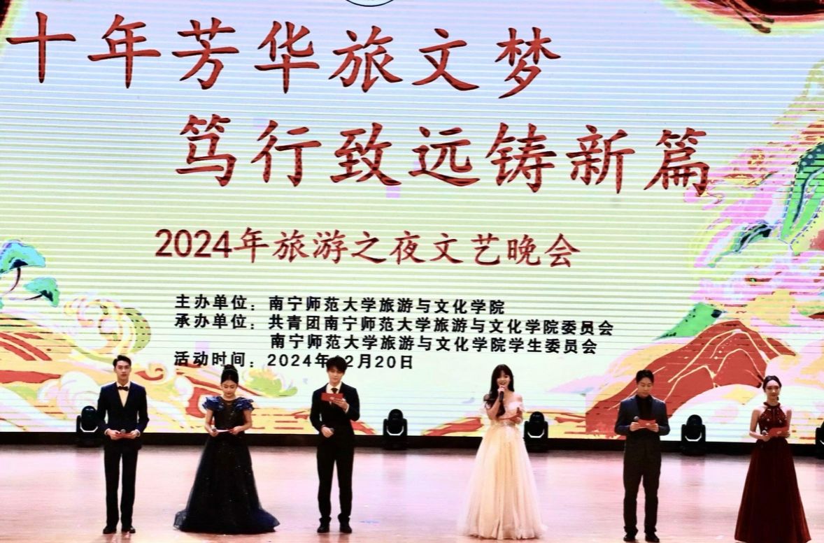 十年芳华旅文梦,笃行致远铸新篇。12月20日晚,庆祝太阳成集团tyc122ccvip建院10周年文艺晚会“旅游之夜”在武鸣校区音舞楼1号报告厅举行。公司部分职能部门领导、公司党政领导班子及部分教师、各界嘉宾以及师生代表一千余人观看演出。