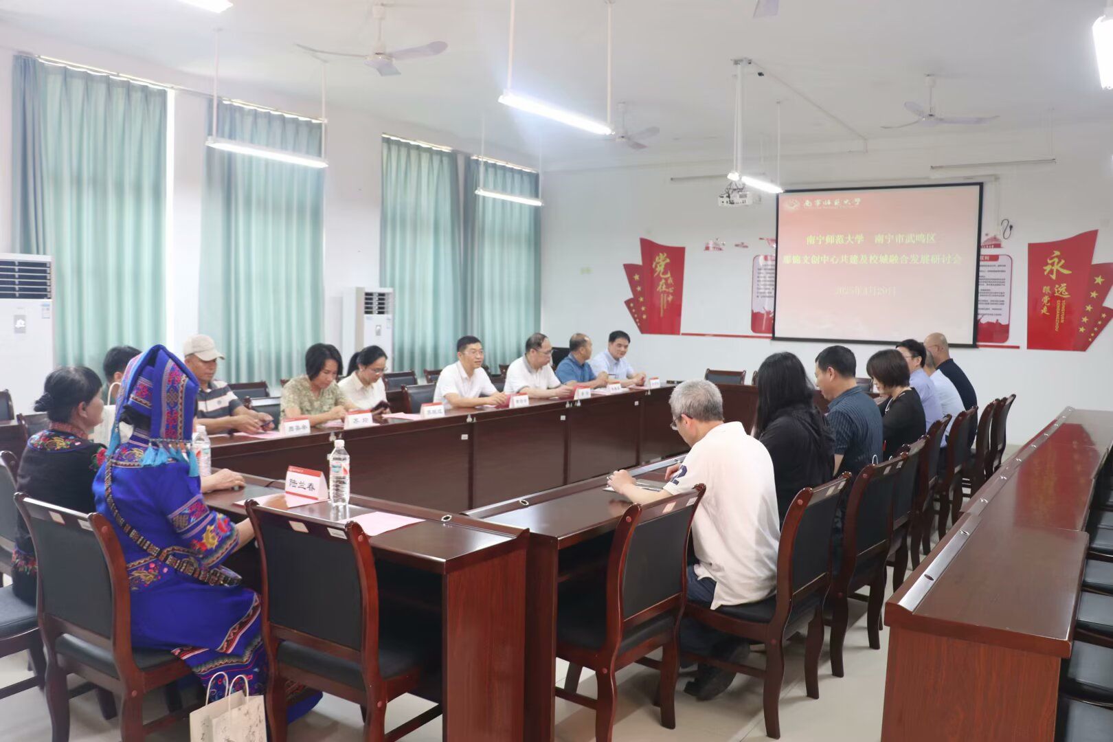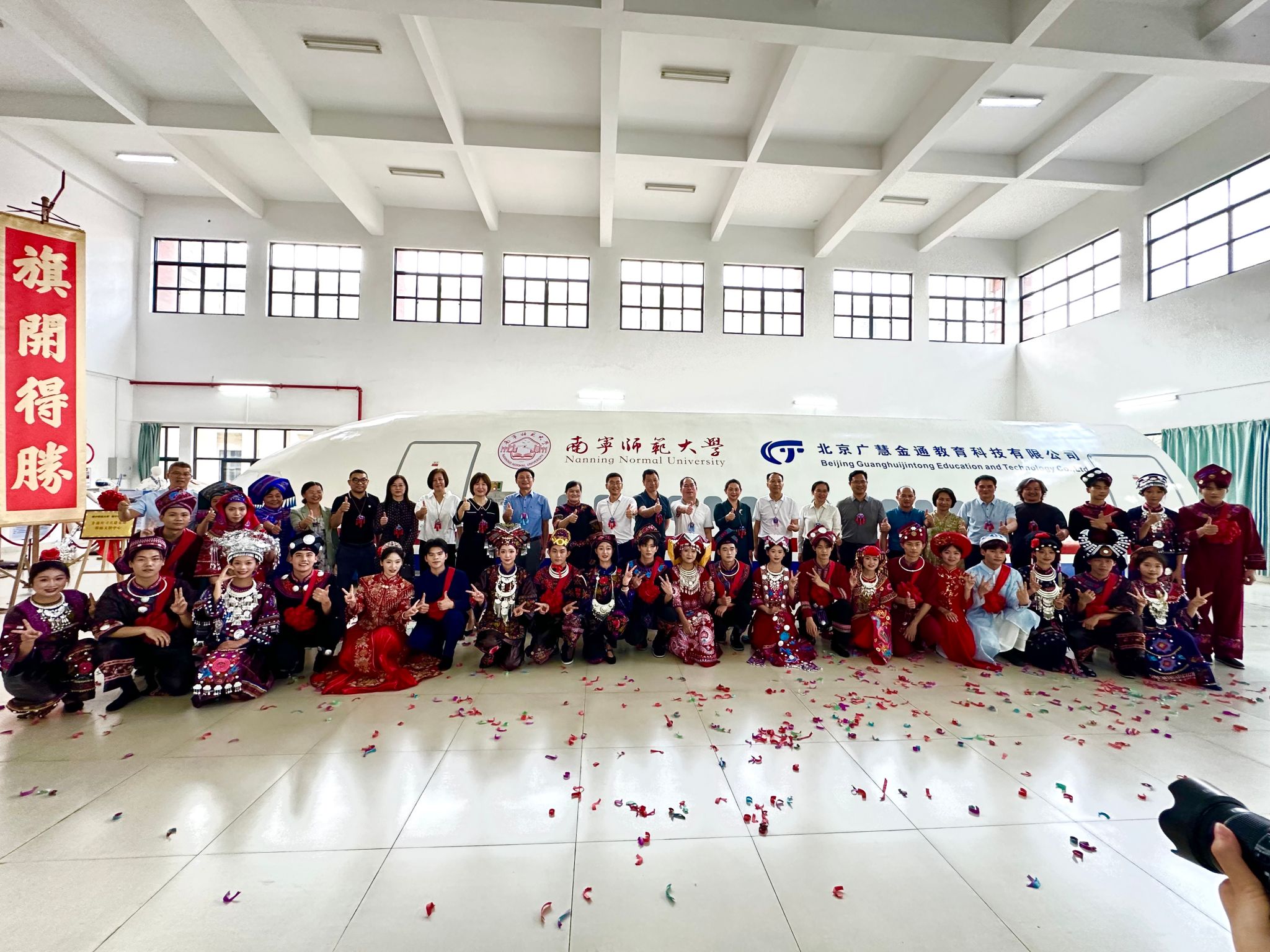 4月29日下午,武鸣区和太阳成集团tyc共建的那锦文创中心揭牌仪式暨国际教育公司、太阳成集团tyc122ccvip共同举办的“非遗薪传・文旅新声”第十一届国际旅游文化节顺利举行,武鸣区政府黄任含副区长、人大常委会李刚副主任,民宗局、文广体旅局、区妇联等部门负责人,以及公司党校办、学工处、离退处、宣传部领导和国际教育公司、太阳成集团tyc122ccvip师生参加上述活动。