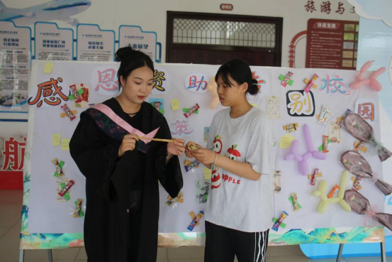 活动现场设置 “资助政策知多少” 问答区与 “感恩资助・心里话” 分享区双面展板。在政策问答环节,员工随机撕下标注序号的 “政策纸条”,回答正确即可领取印有 “资助政策宣传纪念品” 字样的笔记本、书签等礼品。2024 级旅游管理专业员工李同学成功答对 “生源地信用助学贷款续贷截止时间” 问题后表示:“这种‘撕纸条’的互动方式很有趣,让我在游戏中记住了政策要点。”感恩分享区的 “感恩墙” 成为活动亮点,员工用彩色便签书写受助感悟:“国家助学金让我不必为学费担忧,现在我能专注学业,已跟随老师参加3项大创项目,我想把这份温暖传递下去”…… 累计收到 78 条感恩留言,现场抽取 15 名幸运员工赠送定制帆布袋与励志书籍。