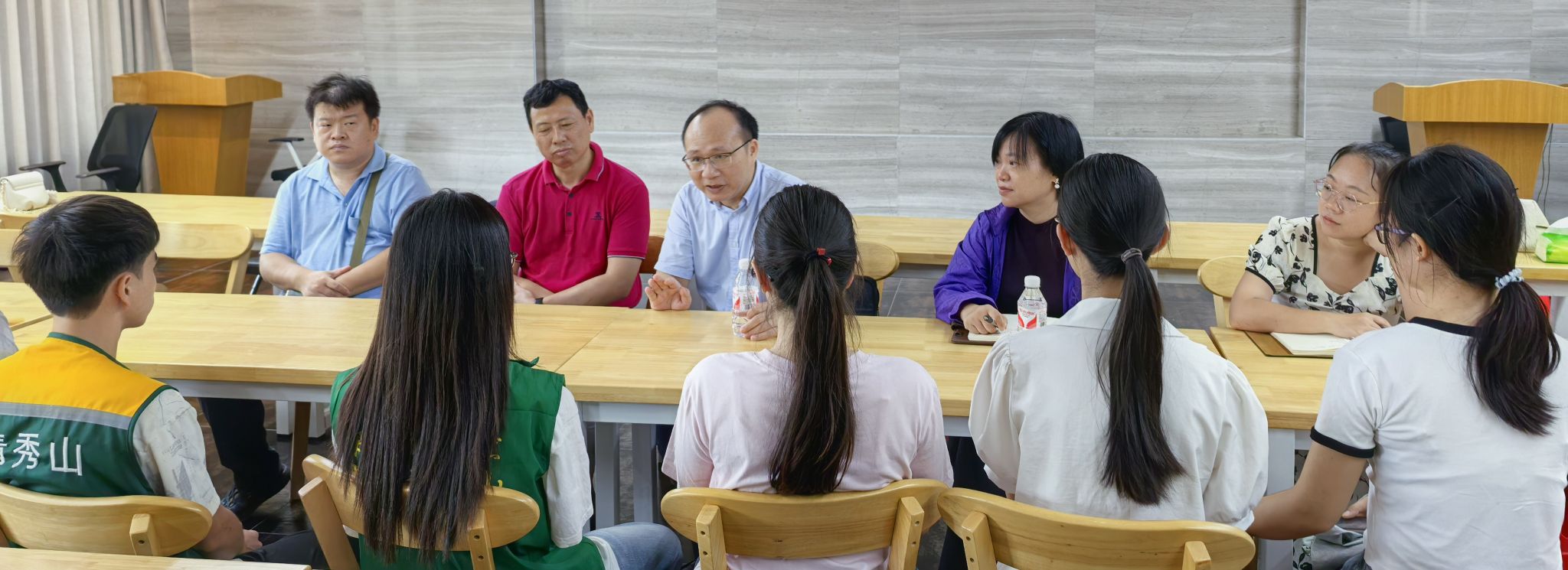 青秀山风景区人力资源部马玉琨主任和实习生所在岗位的班组长介绍了实习生们在实习期间的岗位情况和工作表现,对同学们的表现给予了高度评价;同时也介绍了青秀山在岗位生产安全和实习生安全管理方面的措施。实习生们也就工作和生活中碰到的问题与领导老师们做了深入交流,对公司主管部门和公司领导能来到实习一线走访和慰问表示感谢。