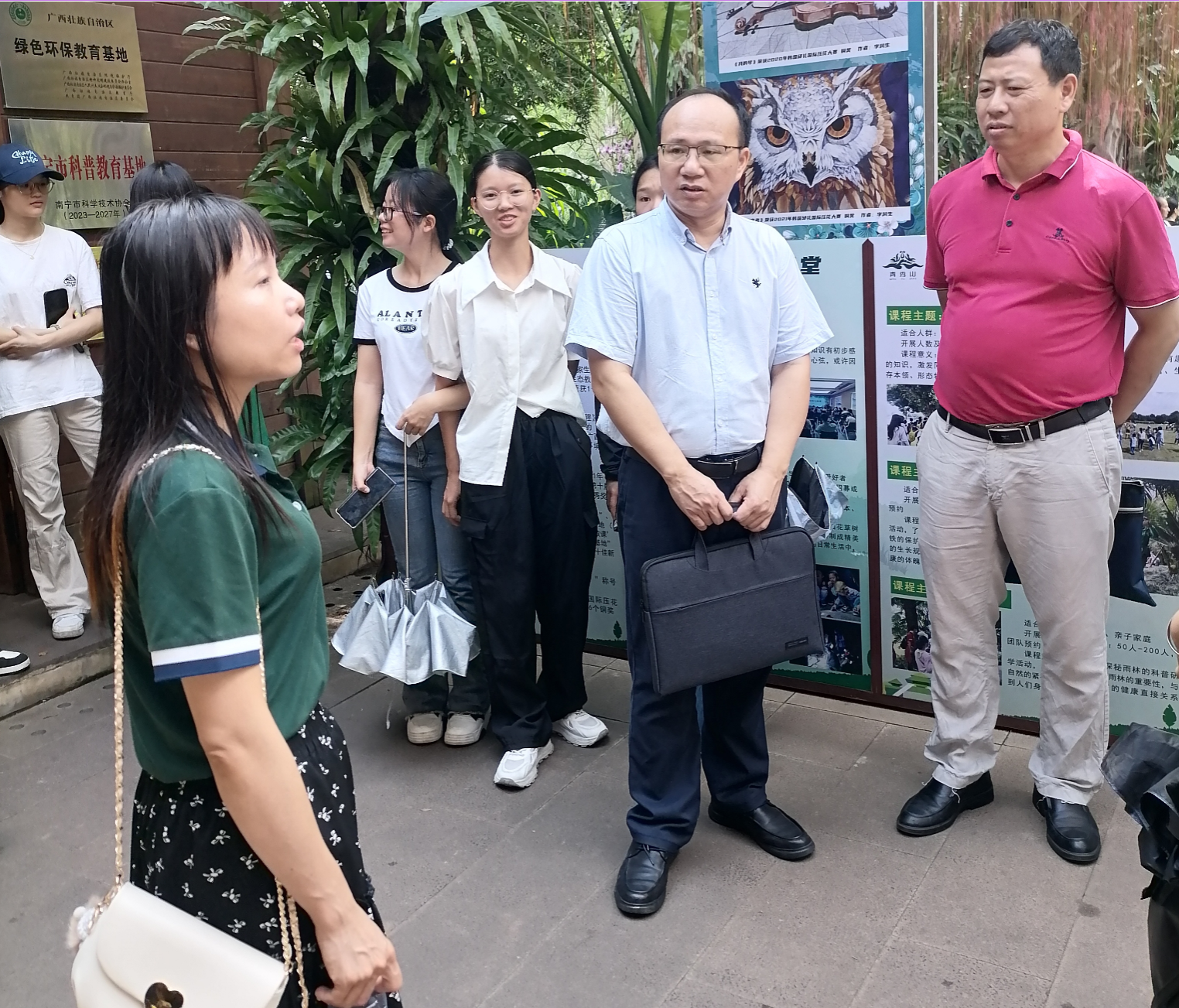 交流结束后,青秀山风景区方面安排了领导和老师来到实习生工作的青秀山自然学堂的研学岗位,近距离体验和现场指导实习生工作。