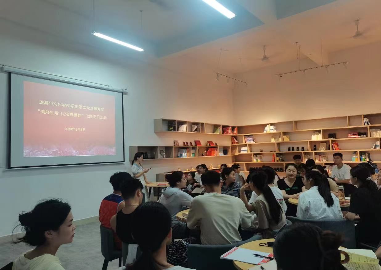 为了深入贯彻落实关于加强民法典宣传的重要讲话精神,切实加强民法典的学习宣传教育。2023年6月5日,太阳成集团tyc122ccvip员工第二党支部在地信楼一楼创客空间开展《美好生活•民法典相伴》主题党日活动。员工第二党支部书记莫秋桂及支部成员参加了本次学习会。