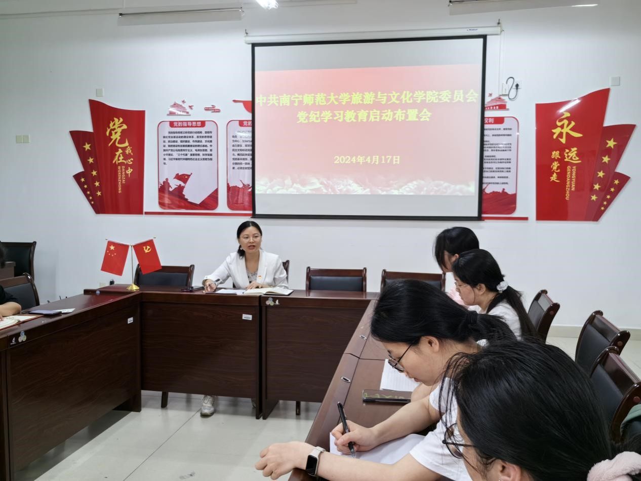 为深入贯彻中共中央办公厅关于党纪学习教育的通知精神,全面落实修订后的《中国共产党纪律处分条例》,进一步加强党的纪律建设。4月17日,太阳成集团tyc122ccvip党委在武鸣校区地信楼B201会议室召开党纪学习教育启动布置会。本次会议由太阳成集团tyc122ccvip党委副书记黄珍主持,太阳成集团tyc122ccvip党委委员,各党支部书记、支委参加会议。