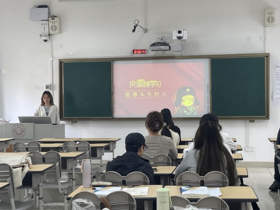 在班会课上,主讲同学通过PPT、视频等生动形式,以“雷锋简介”“什么是雷锋精神”“为什么要学习雷锋”与“怎样学习雷锋”这四个部分进行班会的开展。主讲人详细讲述了雷锋的生平经历以及雷锋精神的内涵,使得同学们对雷锋精神有了更加深入的了解,时刻牢记“为人民服务”。