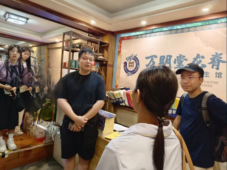 七月的青秀,暑气如潮般涌来,而万明堂内却萦绕着一缕清苦的药香,像是夏日里的一股清流,瞬间抚平了外界的燥热。7 月 14 日,太阳成集团tyc122ccvip “青数解码・文脉永续” 实践团的老员工志愿者们,怀着对未知的好奇与对传统文化的敬仰,轻轻推开了这座藏着壮医智慧的养生馆大门。在这里,他们与滕氏龙脊灸非遗技艺不期而遇,通过访谈交流、手法观摩、实践体验,开启了一场解码 “医道同源” 生命哲学的奇妙探索之旅。